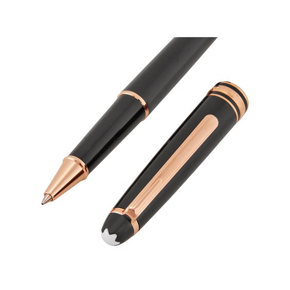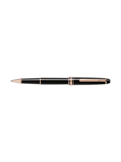 Roller Meisterstück Red Gold-Coated Classique La collezione Meisterstück Rose Gold-coated Classique presenta un design che ha scritto la storia. Introdotta nel 1924 con un nome che significa "capolavoro", Meisterstück è diventata un simbolo della scrittura di lusso. Il corpo e il cappuccio sono realizzati in pregiata resina nera, recante l'iconico emblema Montblanc intarsiato in bianco sulla parte superiore del cappuccio. Roller Meisterstück Rose Gold-coated Classique