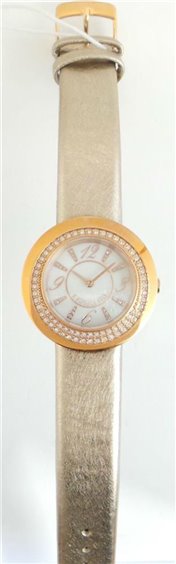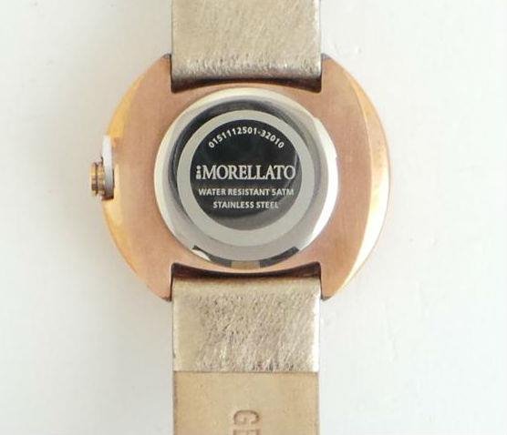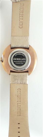 Orologio Morellato Luna. Cassa mm 34 in acciaio 316L placcato oro rosa impreziosita da cristalli bianchi. Cinturino in pelle tinta oro effetto satinato, chiusura a fibbia in acciaio placcato oro rosa. Quadrante madreperla con indici applicati color oro rosa. Vetro minerale. Movimento al quarzo. Impermeabilità 5 atmosfere.