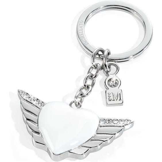 Portachiavi in acciaio a forma di cuore con cristalli.