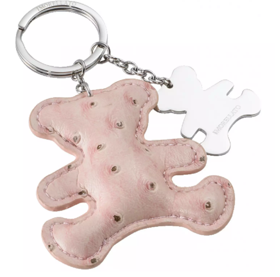 Portachiavi donna , orsetto in pelle rosa chiaro , orsetto in acciaio 316L , lunghezza totale cm 12 .