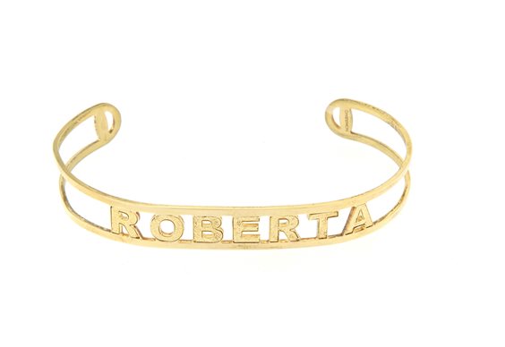 BRACCIALE NOMISSIMO RIGIDO IN ARGENTO COLORE ORO GIALLO CON SCRITTA NOME ROBERTA