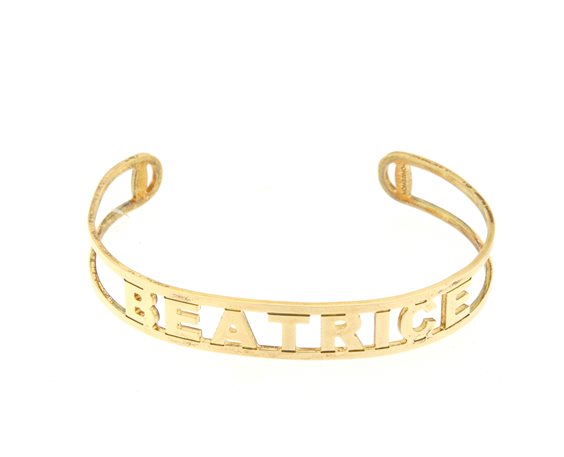 BRACCIALE NOMISSIMO RIGIDO IN ARGENTO COLORE ORO GIALLO CON SCRITTA NOME BEATRICE