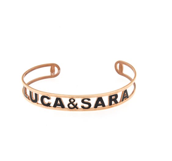 BRACCIALE NOMISSIMO RIGIDO IN ARGENTO COLORE ORO ROSA CON SCRITTA NERA LUCA&SARA