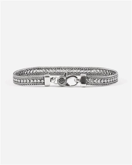 Due contorni in corda argentata a coda di volpe rivoluzionano il classico bracciale tennis in brillanti bianchi. Nel Bracciale Tennis White Foxtail la tradizione si veste di novità, brandizzata con la chiusura Nove25. Il Bracciale Tennis White Foxtail fa parte della Collezione Timeless ed è realizzato in Argento 925. Come tutti i gioielli Nove25 anche questo Bracciale viene progettato e lavorato in Italia mediante l'utilizzo delle più moderne tecnologie e rifinito a mano per garantirne il massimo dettaglio e la più elevata qualità. Questo gioiello viene proposto con una finitura Brunito Lucido.