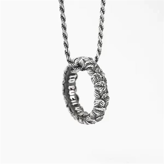 Collana Pendente Cerchio Foglie della Collezione Eden in Argento 925. 100% made in Italy rifinito a mano. Lunghezza 70 cm.