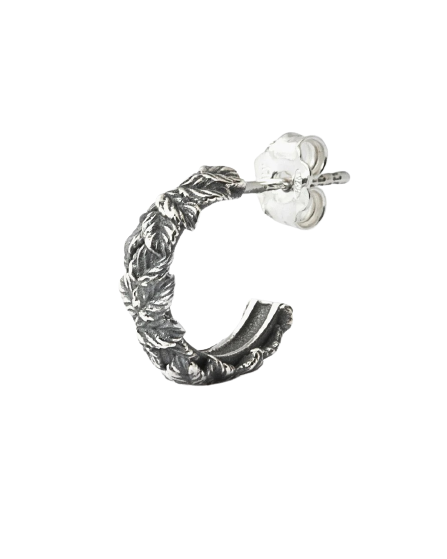 L'Orecchino Singolo Cerchio Foglie Piccolo fa parte della Collezione Eden ed è realizzato in Argento 925. Come tutti i gioielli Nove25 anche questo Orecchino viene progettato e lavorato in Italia mediante l'utilizzo delle più moderne tecnologie e rifinito a mano per garantirne il massimo dettaglio e la più elevata qualita'. Questo gioiello viene proposto con una finitura Brunito Lucido ed è disponibile in taglia unica.
