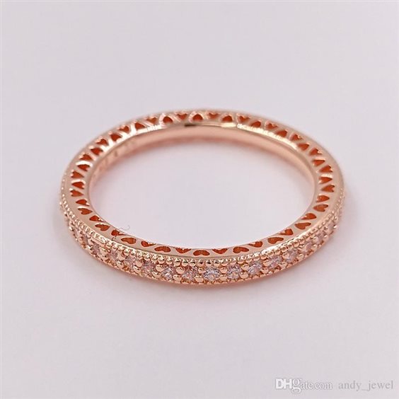 Anello pietre scintillanti e cuori in lega emtallica placcata oro rosa 14kt e zirconia cubica