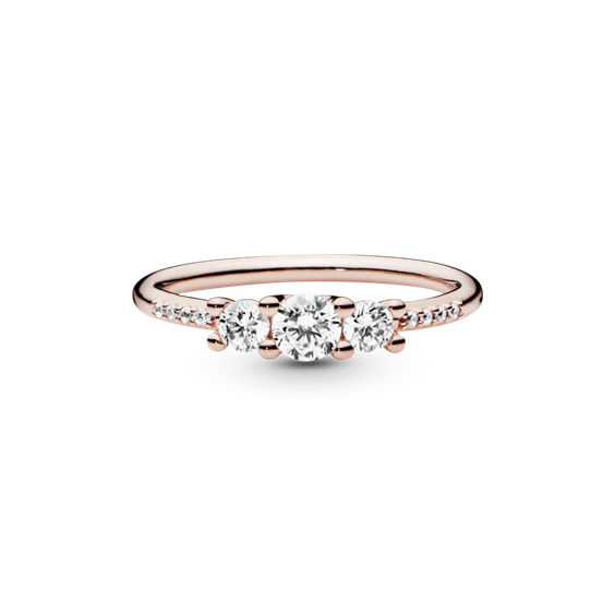 Anello trilogy in lega metallica placcata oro rosa 14kt e zirconia cubica