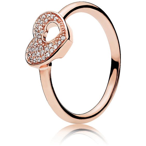 Anello Da Donna Di Pandora. Anello Cuore Scintillante Con Intaglio A Forma Di Cuore. Gioiello Realizzato In Pandora Rose (lega emtallica placcata oro rosa 14kt) E Zirconia Cubica.