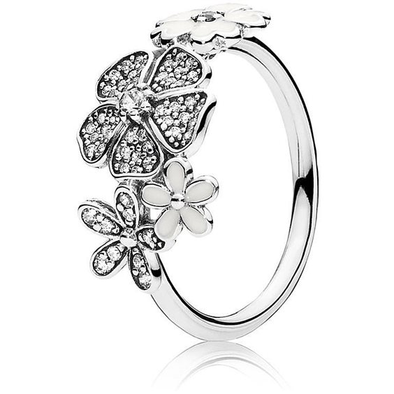 ANELLO BOUQUET LUMINOSO, IN ARGENTO, SMALTO BIANCO E ZIRCONIA CUBICA.