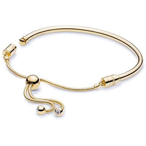 Pandora Shine dona la sua luce a questo bracciale scorrevole che si adatta perfettamente ad ogni polso arricchendo ogni look. Le pietre scintillanti sono la chiusura perfetta! misura 1. Realizzato in lega metallica placcata oro giallo 18kt