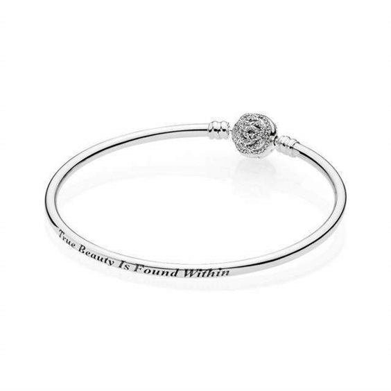 Bracciale in edizione limitata Disney la Bella e la Bestia in argento Sterling 925 e zirconia cubica, con incisione True Beauty is Found Within