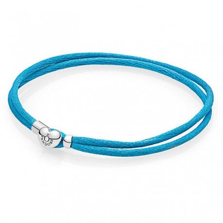 Bracciale da donna di Pandora in argento 925 e fibre sintetiche turchesi.