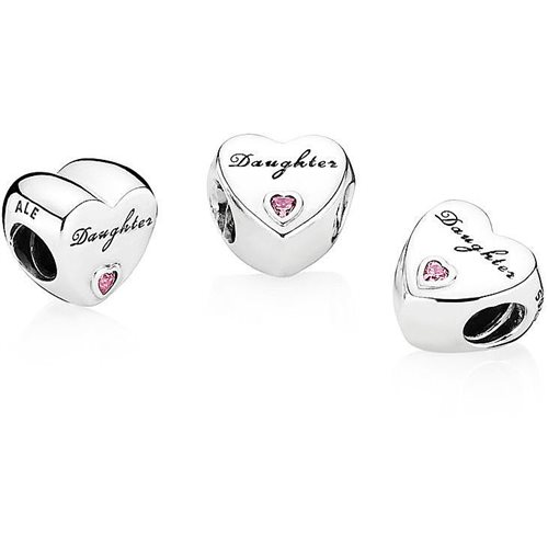 Charm pandora con scritta 'daughter' (figlia), in argento e zirconi.