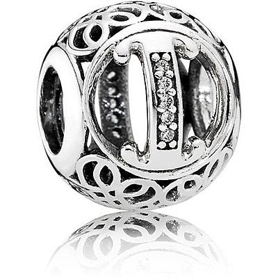Charm con iniziale I, realizzato in argento 925 e zirconia cubica