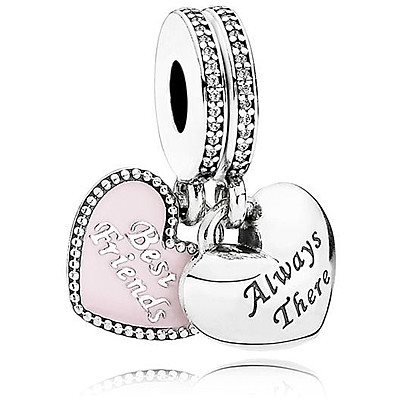 Charm Pendente Migliori Amiche. Gioiello Realizzato In Argento 925 Brunito, Smalto Rosa E Zirconia Cubica