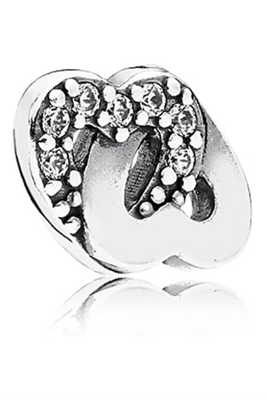 Charm Pandora Intreccio d'Amore in argento sterling 925 composto da due cuori intrecciati uno lucido e uno impreziosito da cristalli di zirconia cubica bianca. Questo charm fa parte della collezione Petite Memories e nasce per essere inserito nei medaglioni della collezione e non direttamente nel bracciale o nelle collane Pandora.
