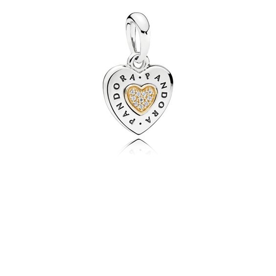 Charm pendente pandora in argento, oro 14k e zirconi.