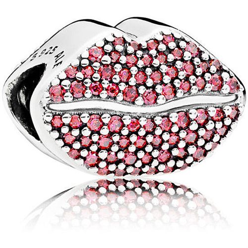 Charm a Forma Di Bocca Realizzato In Argento 925 E Zirconia Cubica Rosso