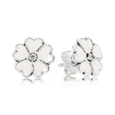 Orecchini Da Donna Di Pandora. Orecchini A Lobo A Forma Di Fiore. Gioiello Realizzato In Argento 925 E Zirconia Cubica.