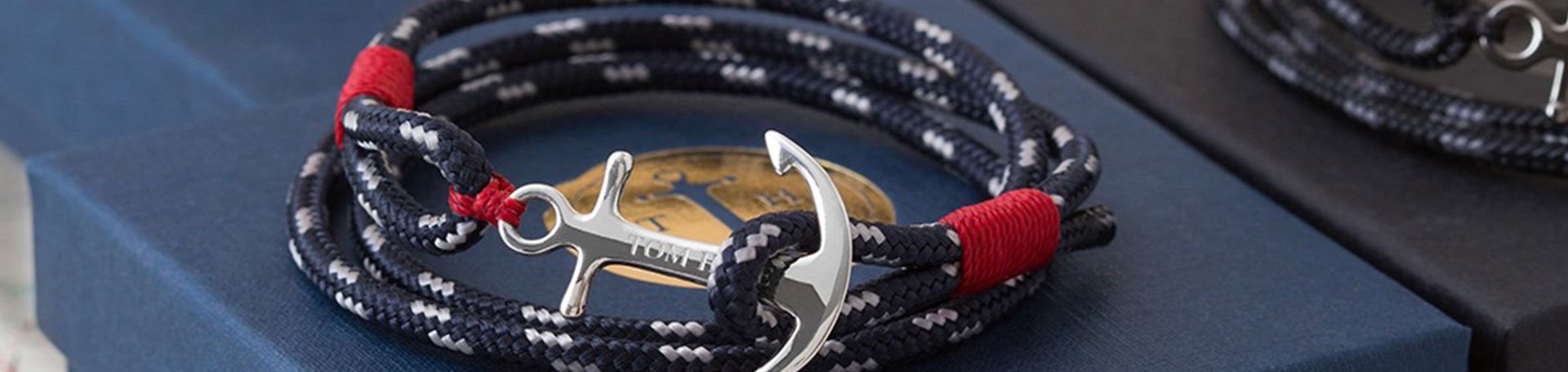 Tom Hope è un brand giovane e dinamico, dal design senza tempo, che riprende la forma dell'ancora abbinata al materiale della corda, tipica dei bracciali nautici, da marinaio.