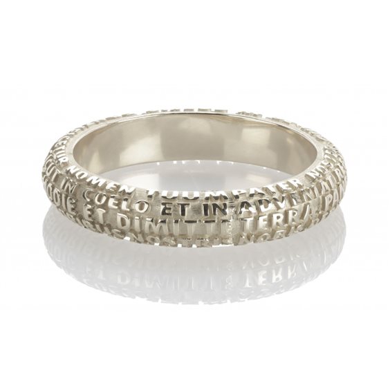 Anello in oro bianco 9k, spessore 4 mm, con incisione del 'Pater Noster'