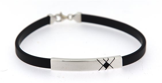 BRACCIALE UOMO IN CAUCIU' NERO CON PIASTRINA E CHIUSURA IN ARGENTO