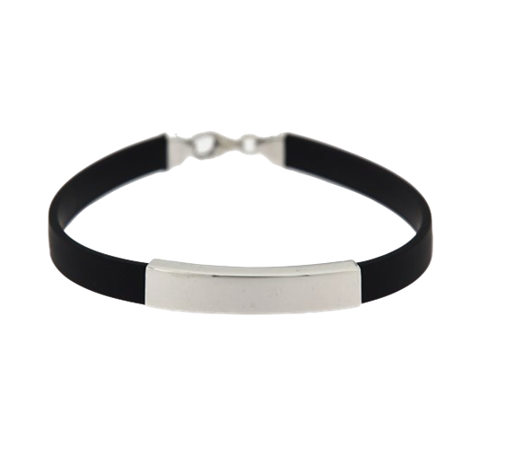 BRACCIALE UOMO IN CAUCIU' NERO CON PIASTRINA E CHIUSURA IN ARGENTO