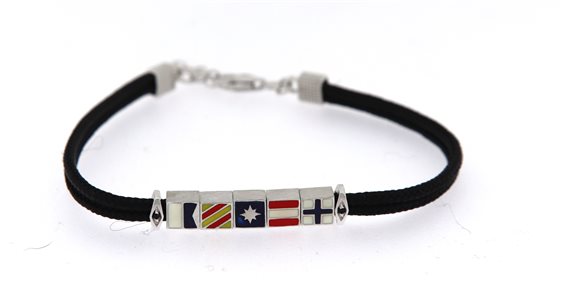 BRACCIALE UOMO IN CORDA NERA CON BANDIERE NAUTICHE E CHIUSURA IN ARGENTO