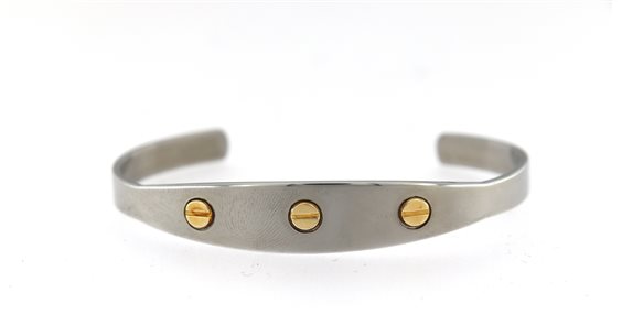 BRACCIALE RIGIDO IN ACCIAIO CON DETTAGLI IN ORO GIALLO