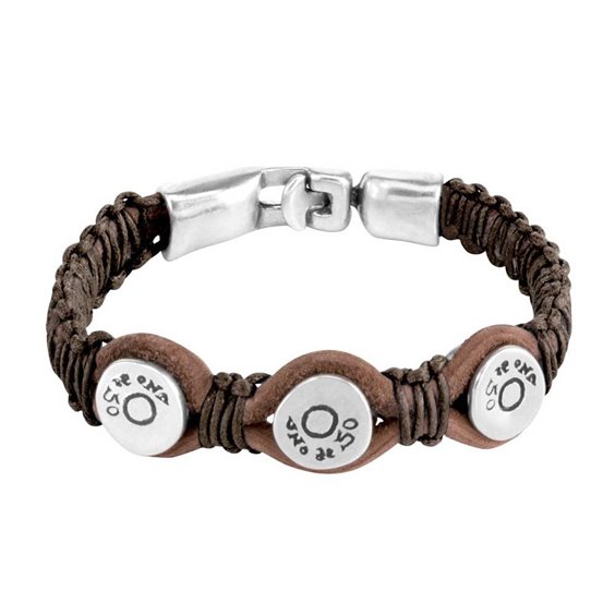 Lega, placcato argento. Bracciale in pelle bicolore con bottoni in lega di metallo argentato anallergico con logo