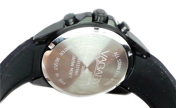 Orologio Vagary By Citizen, Movimento Al Quarzo Citizen, Cal. 0510 Funzioni Cronografo Caratteristiche Cassa In Acciao, Cinturino In Morbido Silicone. Wr 10 Bar. Dimensioni Diametro Cassa 43.5 Mm.