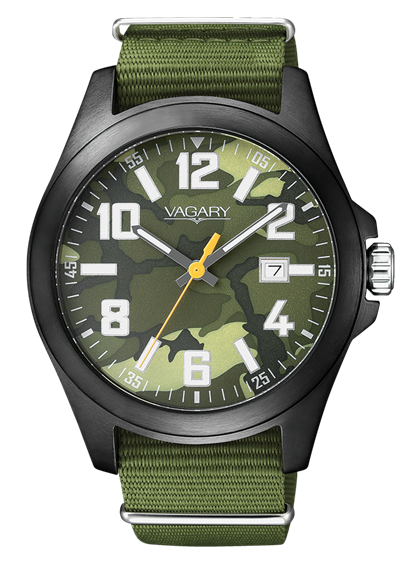 Orologio con movimento al quarzo, cassa in acciaio NERA dalle dimensioni mm 42.00, Orologio con movimento al quarzo, cassa in acciaio nero opaco, vetro in cristallo minerale, quadrante con stampa mimetica nera, numeri arabi e indici, lancette fluorescenti, datario alle ore 3, cinturino verde in kevlar, STILE MILITARE materiale idrorepellente e con grande resistenza al calore e alla fiamma. Per le sue caratteristiche viene utilizzato come fibra di rinforzo per la costruzione di giubbotti antiproiettile, di attrezzature per gli sport estremi e per componenti usati in aeroplani, imbarcazioni e vetture da competizione. Resistente all’acqua fino a 10 metri. Uno stupendo orologio sportivo ma anche decisamente raffinato. Perché Vagary ci mette sempre qualcosa in più per dare carattere ai propri orologi. Tutti i nostri orologi sono dotati di scatola e garanzia originale.
