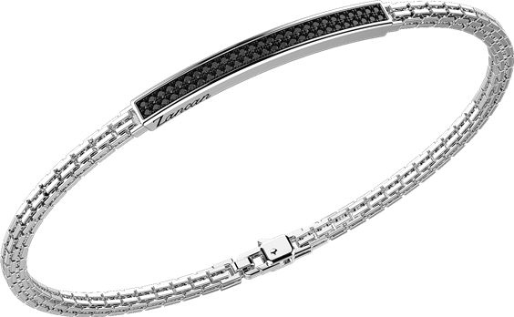 Bracciale a catena della collezione Zancan Insignia 925 da uomo. Colore: argento e nero. Il gioiello è in argento 925‰ con targa e doppia fila di spinelli neri.